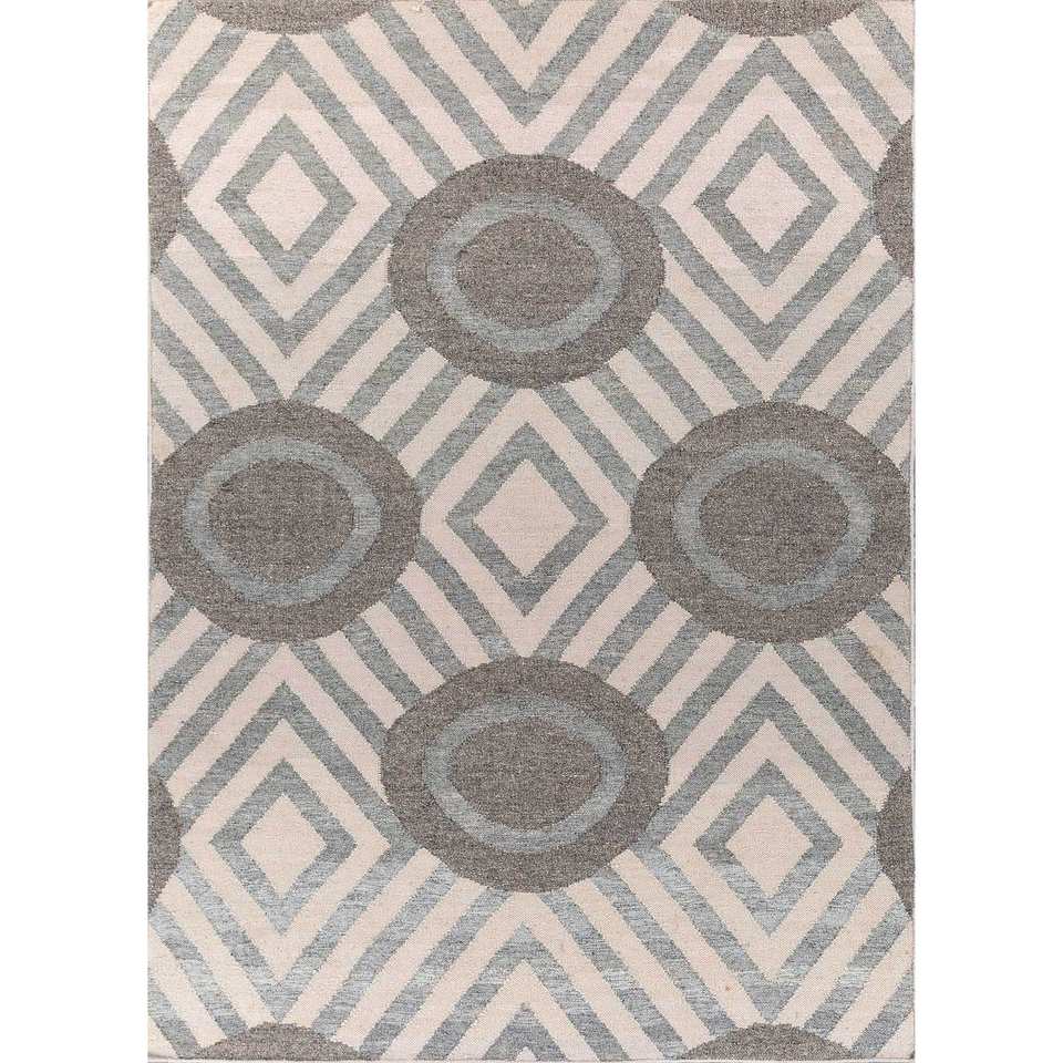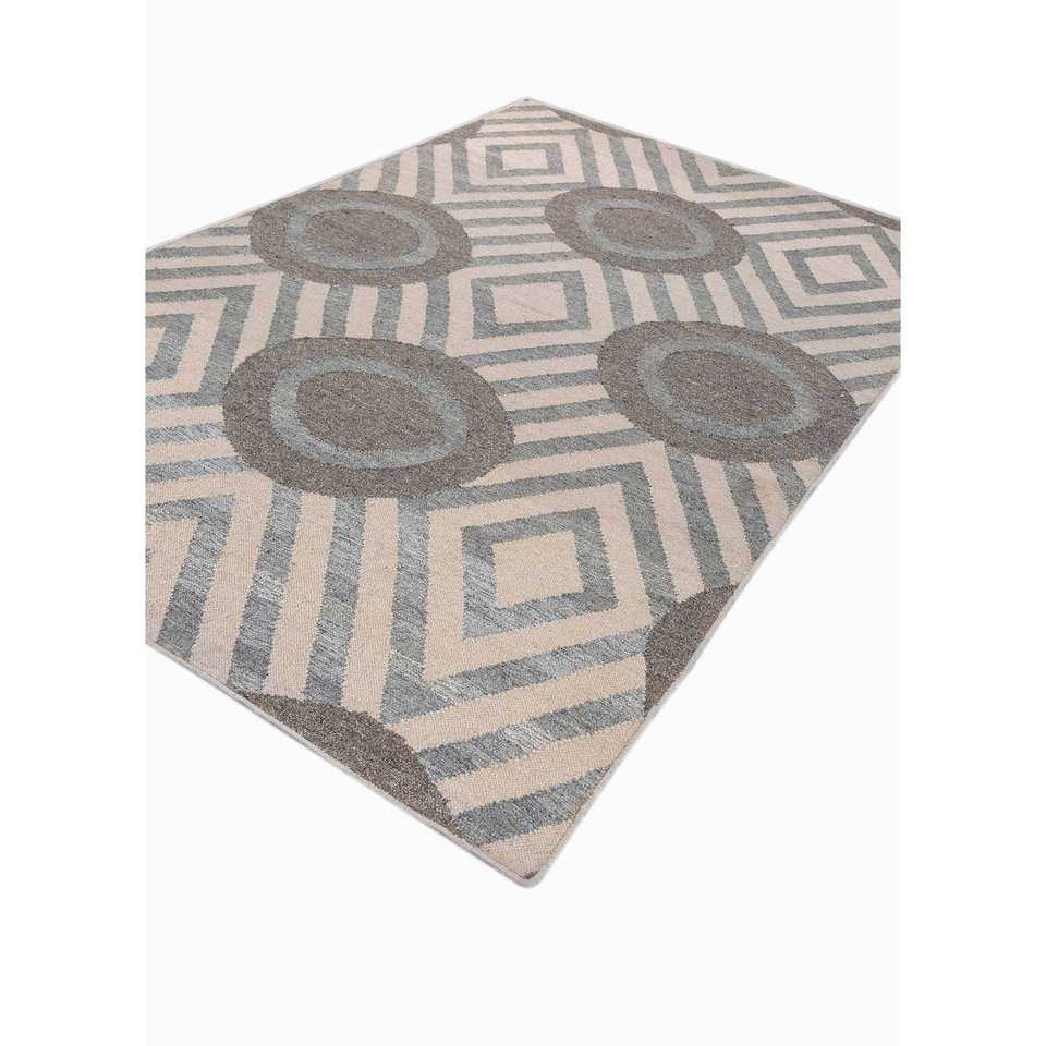 Alhambra Ivory Flat Weave Wool Rugs Geometric Handmade Rectangle Rugs for Home for Living Room Bedroom Hallway-Model ADWL-13127