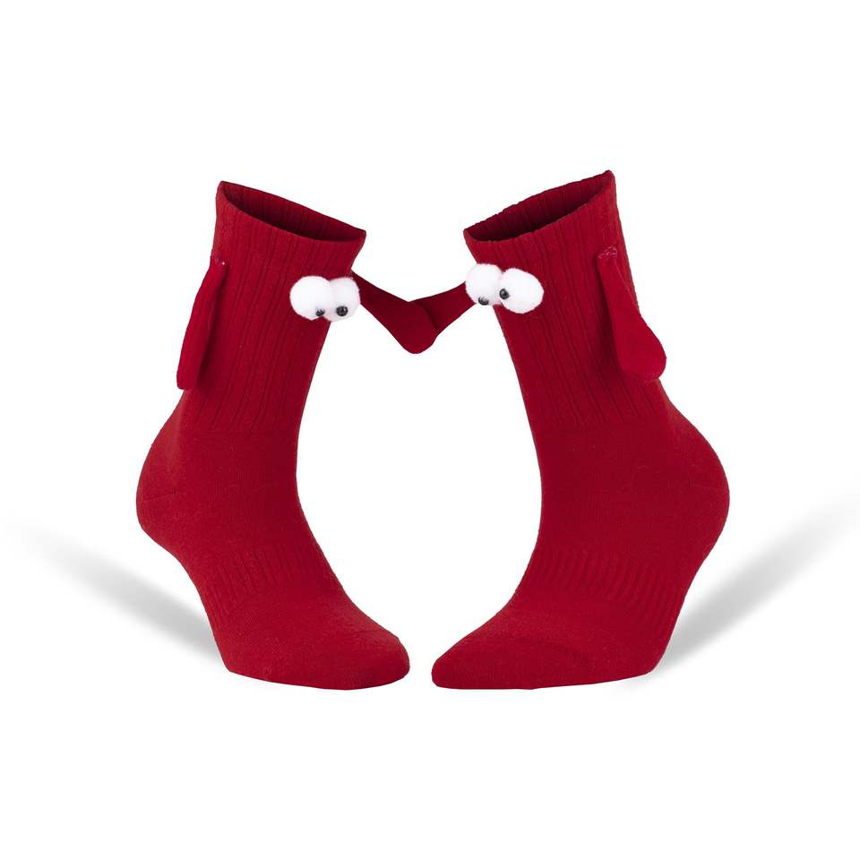 Alibaca Magnetic Couple Socks Red Plush Valentine's Day Gift Holding Hands 3D Eyes 1 Pair
