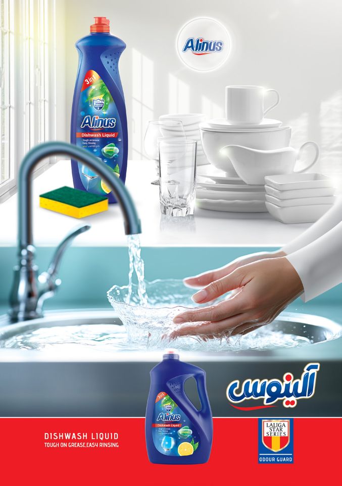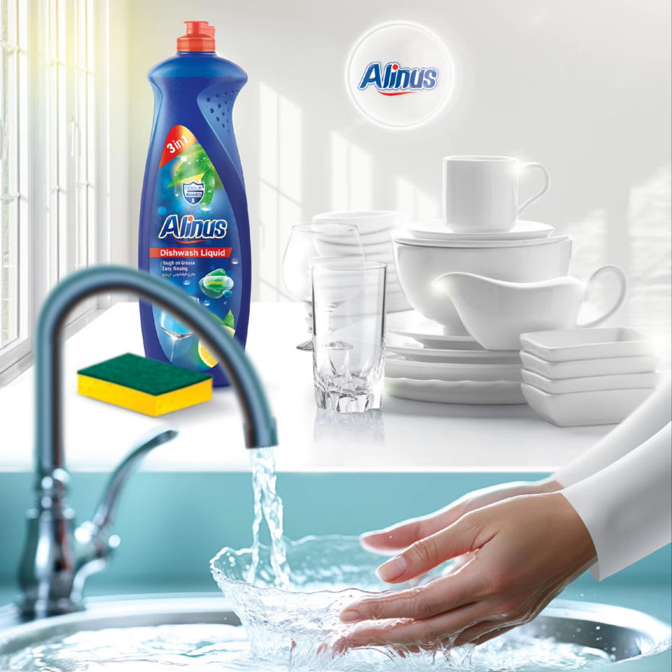 Alinus Dishwash Liquid Lemon 3in1 Tough on Grease Easy Rinsing 360g 15-30% Active Ingredient Made in AE