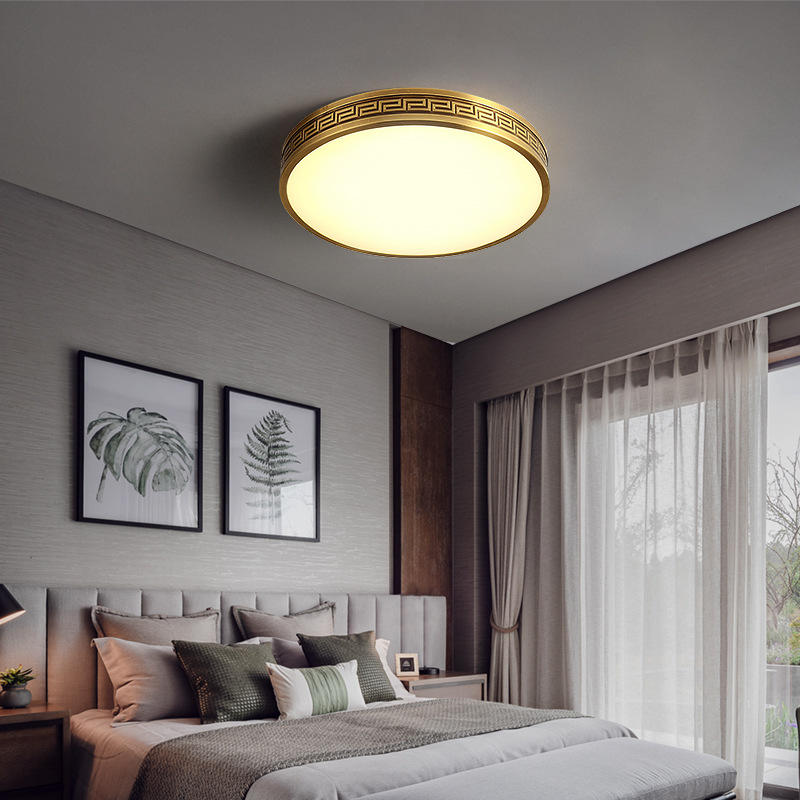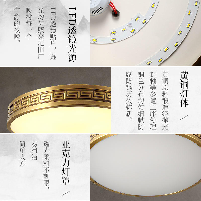 All-Copper LED Ceiling Light New Chinese Style for Master Bedroom Simple Chinese Style Copper Light for Study Entrance Hall