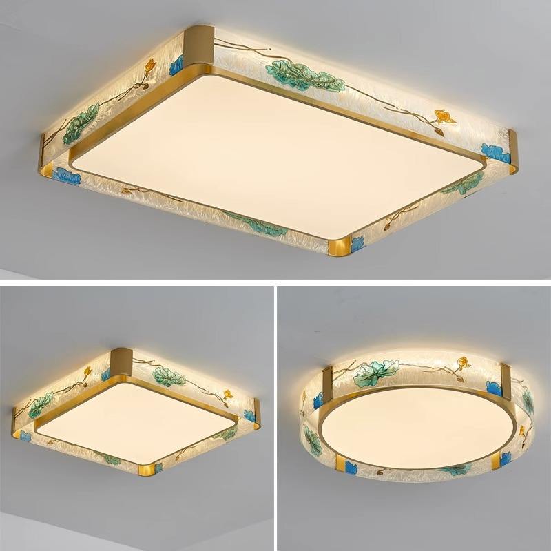 All-Copper Rectangular Chinese Style Ceiling Light Luxury Grand Enamel Zen Style for Living Dining Bedroom New Style