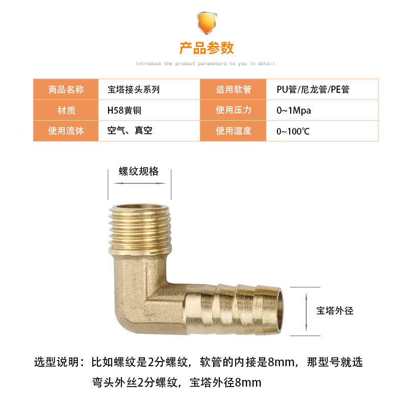 All Copper Right Angle Male Thread Pagoda Connector G1 2 3 4 For Pneumatic Hardware 8mm