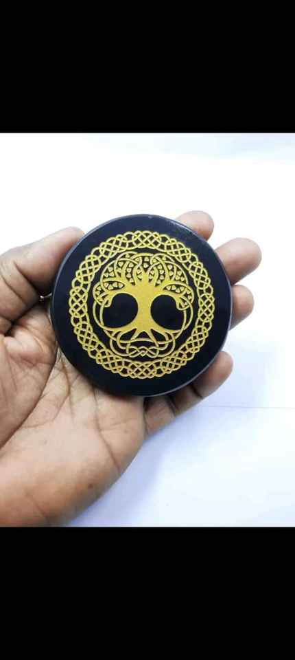 All Design Custom Black Agate Charging Plate Engraved Crystal Coaster Round Shape Polished for Healing Energy and Decoration