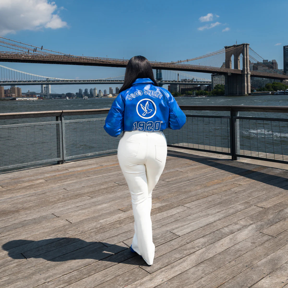 All Eyes On Me Zeta Crop Leather Bomber Jacket Womens Greek Sorority Premium Vegan Leather Zip Up Jacket