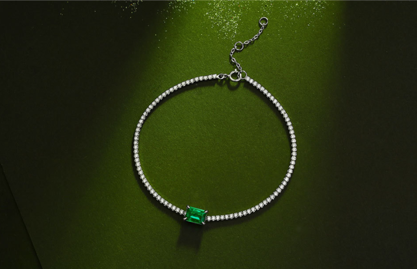 All Fashion 2024 Sier Lab Grown Emerald Silicone Adjustable Couple Party Gift Bracelet with Emerald Cut