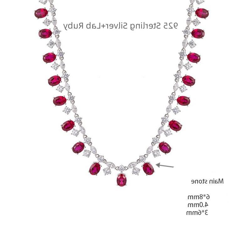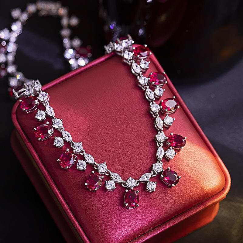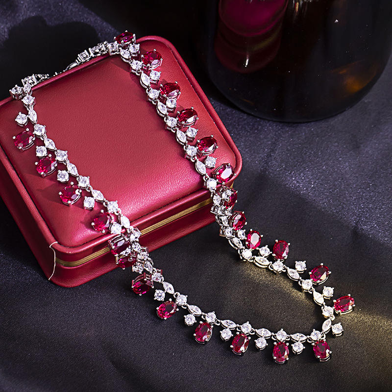 All Fashion Lab Grown Oval Cut Ruby Imitation Pearl Blade Statement Necklace Party Silicone Jewelry Set Unisex 16inches