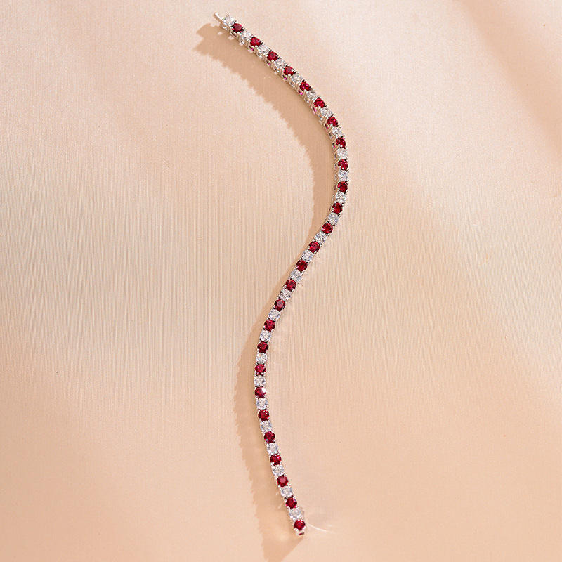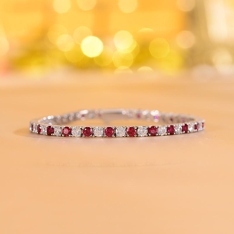 All Fashion Tennis Ball Lab Grown Band Sier Women Bracelet Ruby Handmade Products for Jewelry