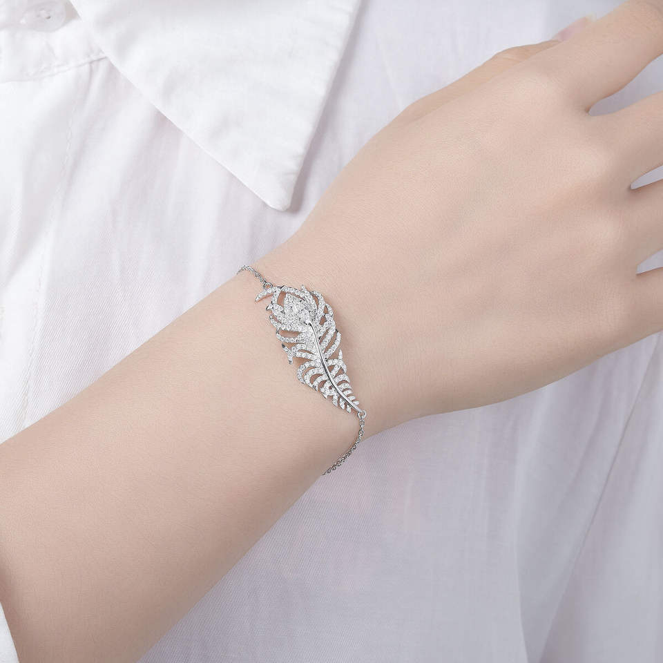 All Fashions S Pea Feather Wholesale Stylish White Gold Moissanite Tennis Bracelets Hiphop Unisex Party Gold Plated Rhodium