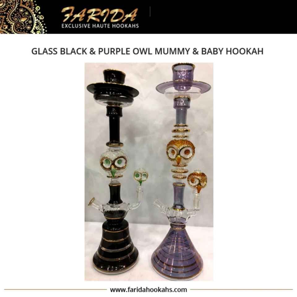 All-Glass Portable Luxury Black Purple Owl Mummy Baby Pattern Hookah Unique Frosted Wood Stainless Steel Packaged Gift Box