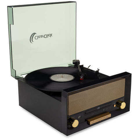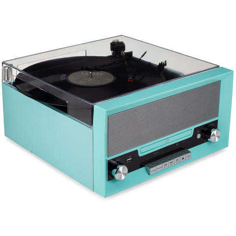 All-In-One Turntable with CD Player, FM Radio, Bluetooth, Aux-In, & USB