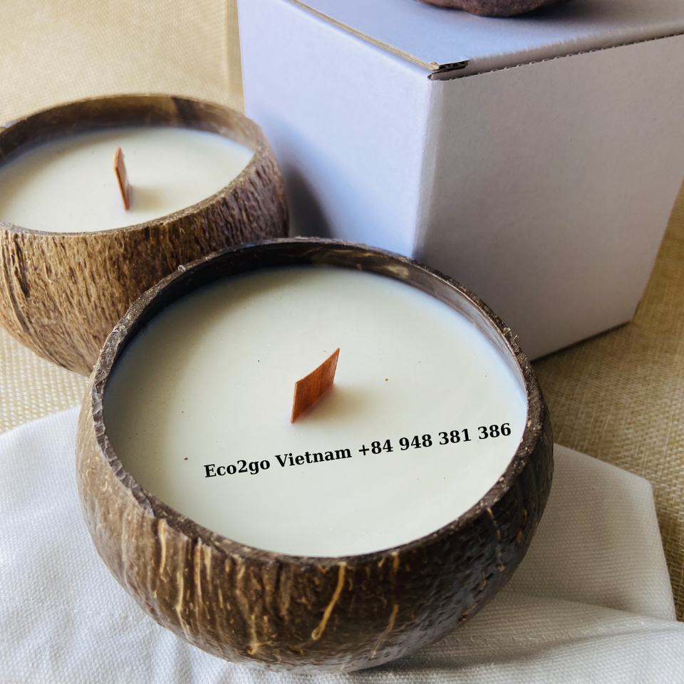 All-Natural Handmade Coconut Shell Bowl Candle/ Coconut Candle Bowl With Crystal Can Customized Packing From Eco2go Vietnam