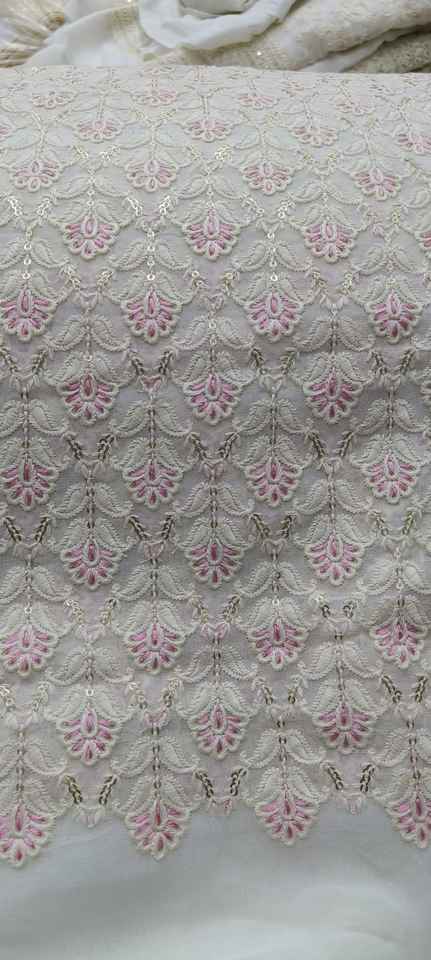 All Over Embroidery With Pink Thread Viscose Georgette Dyable Fabric for Making Blouse Mens Clothing
