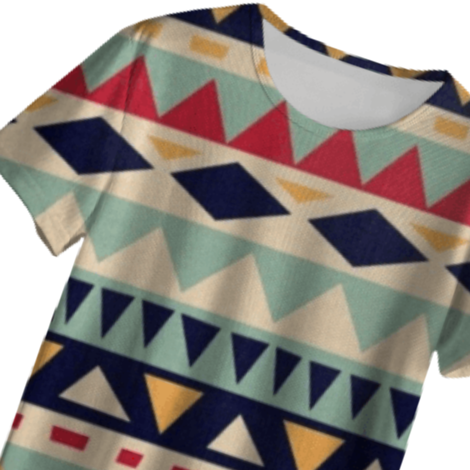 All Over Sublimation Print Tshirt Tribal Geometric Pattern Tee Unisex Fashion Top OEM ODM Polyester High Quality Custom Printed