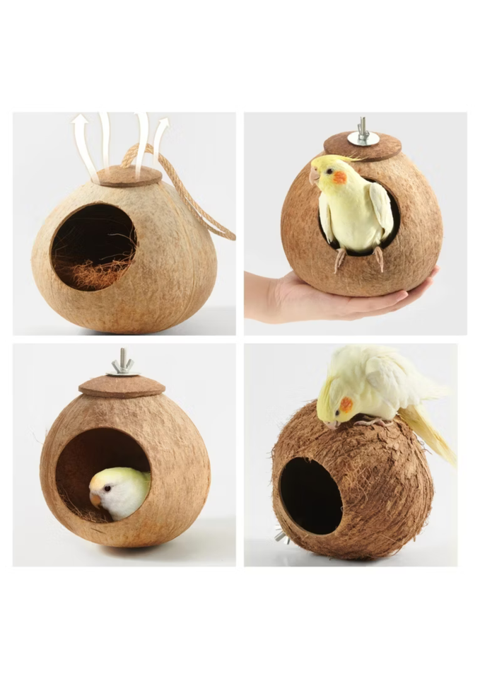 All Seasons Universal Bird Nest Natural Coconut Shell Ladder Climbing Net for Budgerigar Lovebird Best Seller Blue Lotus