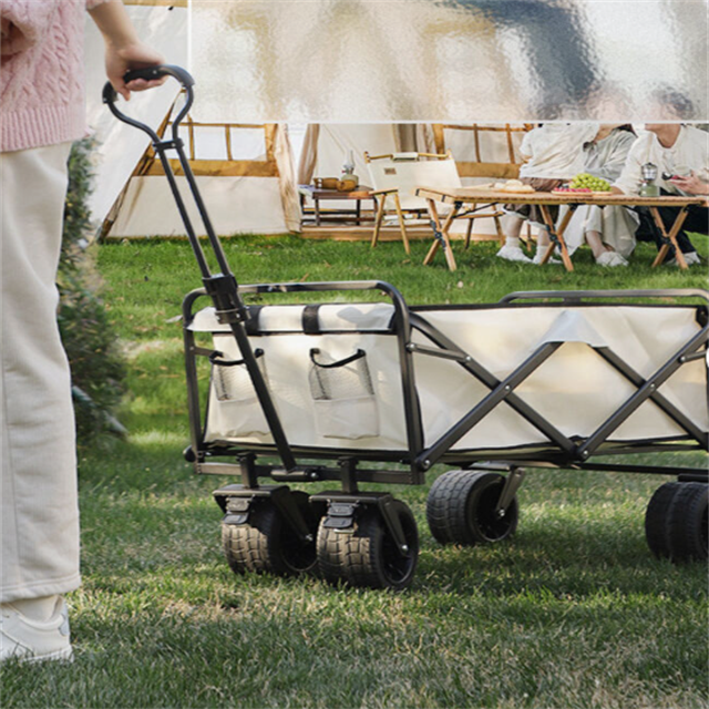 All-Terrain Foldable Outdoor Trolley Wagon - 4 Wheeled Heavy-Duty Cart for Beach, Camping, Grocery & Picnic