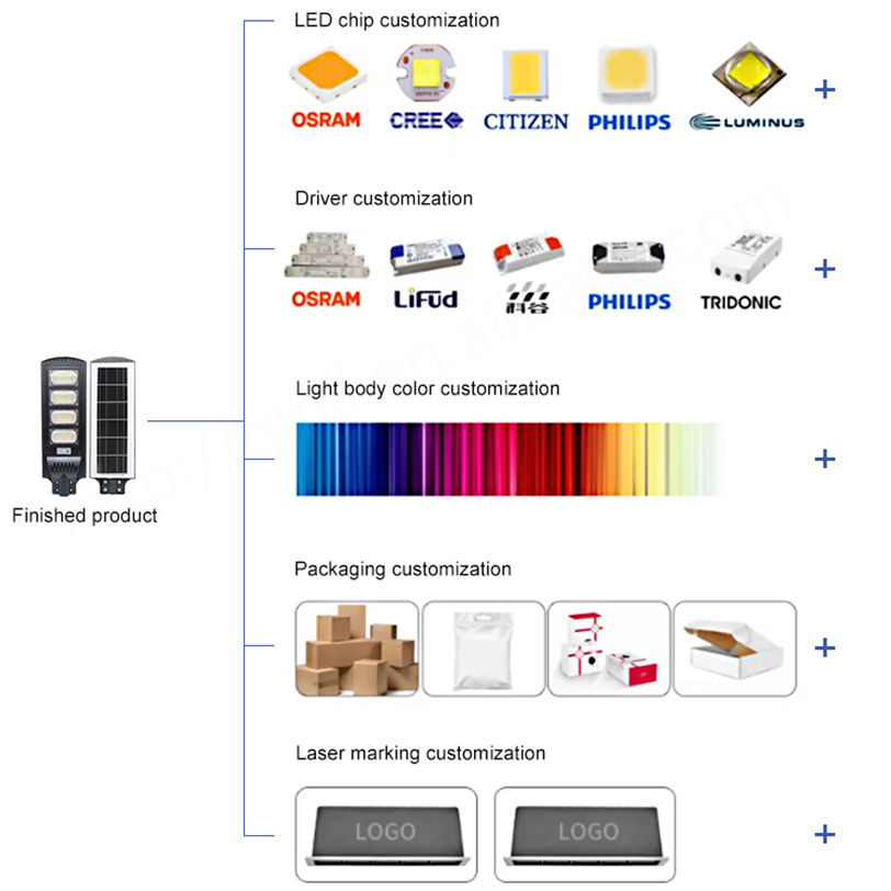 All-in-One 60W/90W/120W/150W Solar Street Light LED High Brightness Waterproof ABS Lamp Body IP67 for Outdoor Road AC Power