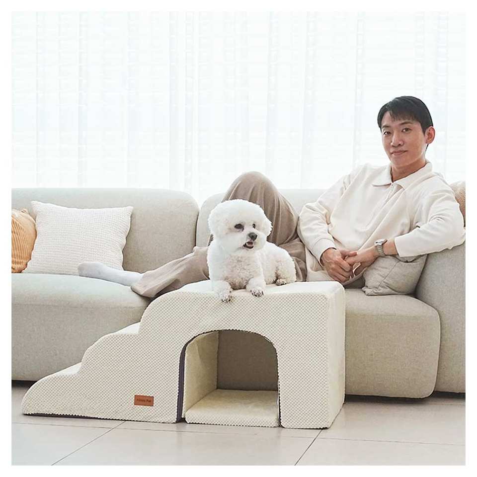 [AllmioPet] 3 Step Cave Style Pet Stairs Ivory AMP C3 IV 3 in 1 Indoor Dog Cat Stair for Safe Sofa Bed Movement