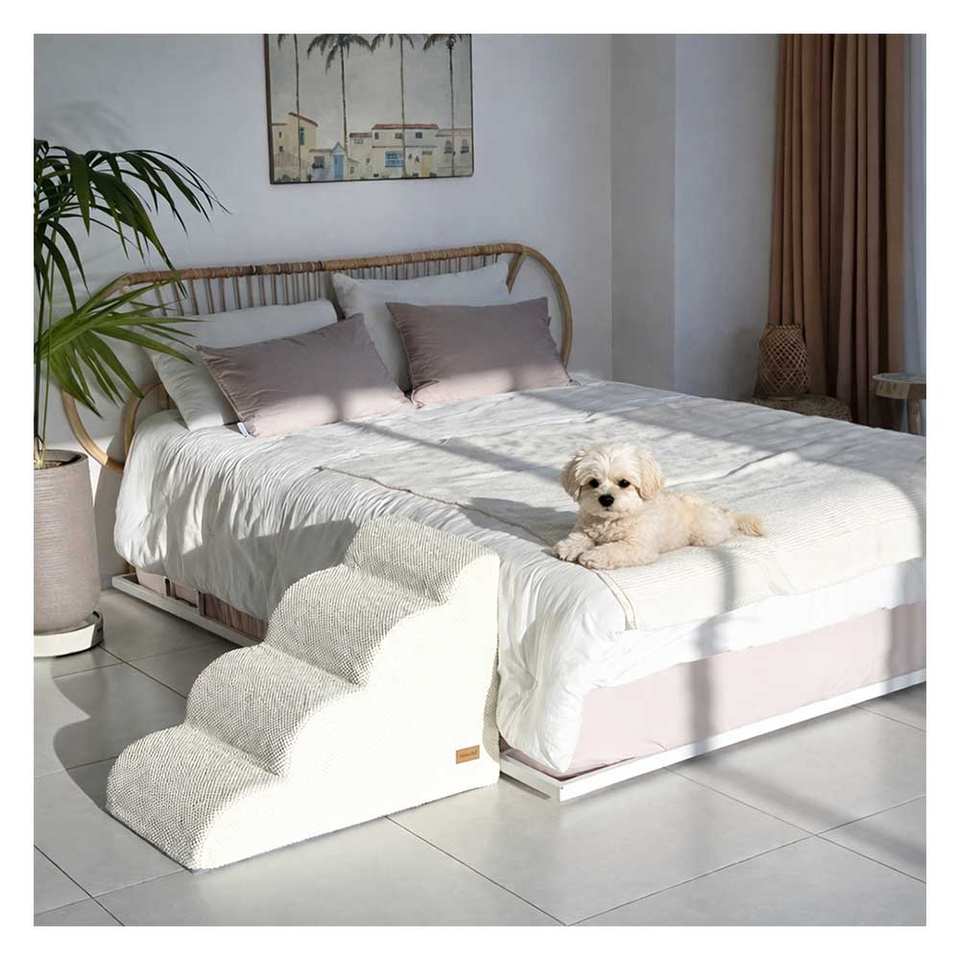 [AllmioPet] Cloud Fabric Pet Climbing Aid 4 Step Ivory AMP 4 IV Designed for Safe Indoor Furniture Access