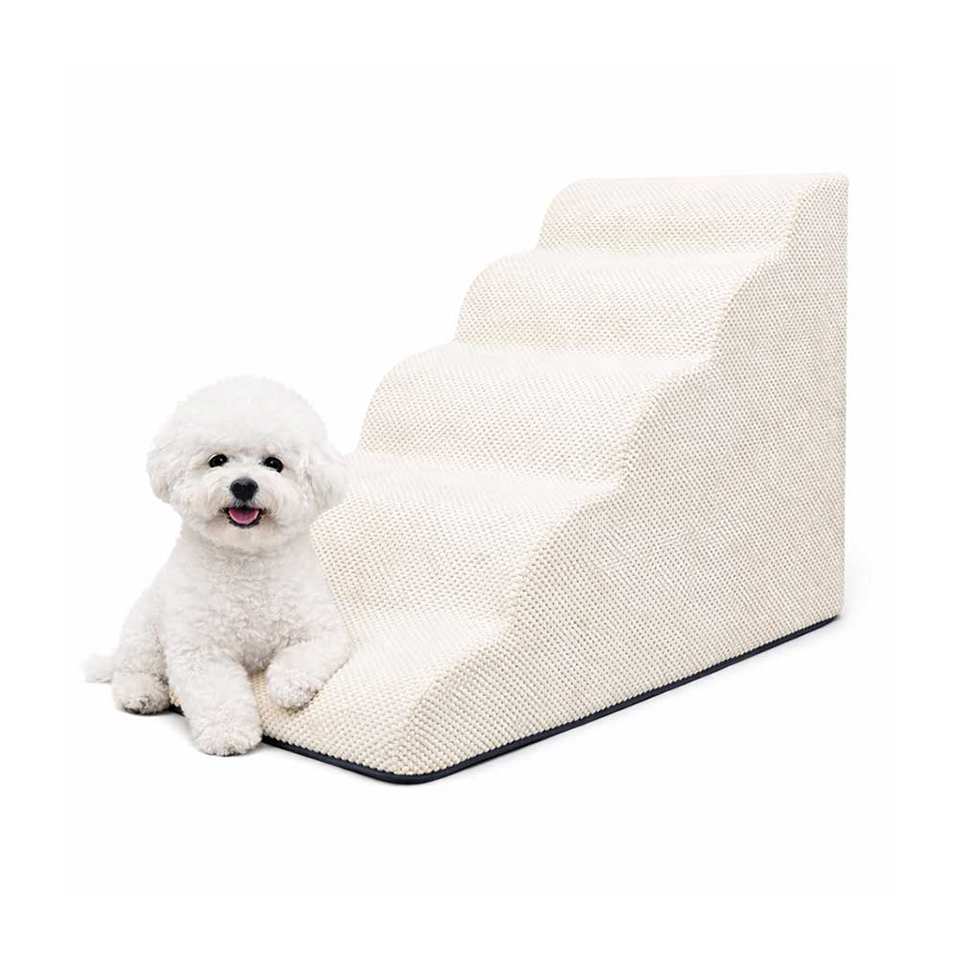 [AllmioPet] Indoor Pet Stairs 5 Step Ivory AMP 5 IV Soft Cloud Fabric Dog Cat Stair for Comfortable Furniture Access