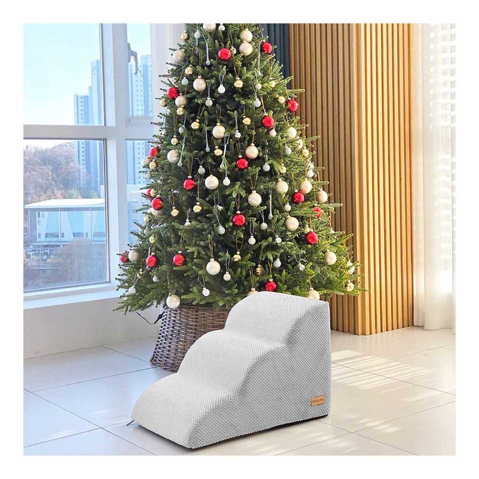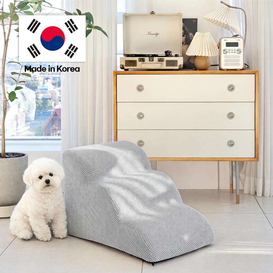 [AllmioPet] Soft Cloud Fabric Pet Steps 3 Step Gray AMP 3 GR Dog Cat Staircase for Comfortable Indoor Living