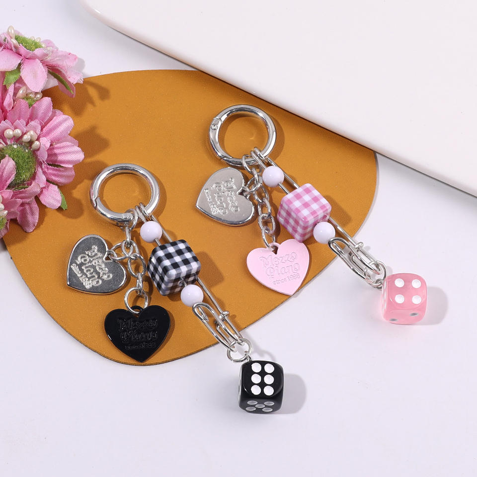 Alloy Heart Lucky Dice Keychain Letter Pendant Metal Beaded Pin Bag Charm