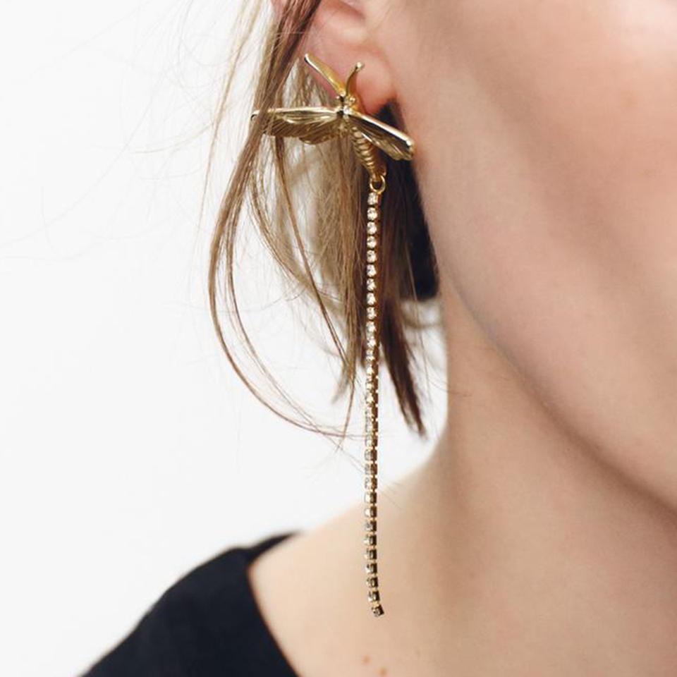 Alloy Tassel Long Earrings Summer New Retro Dragonfly Earrings for Women