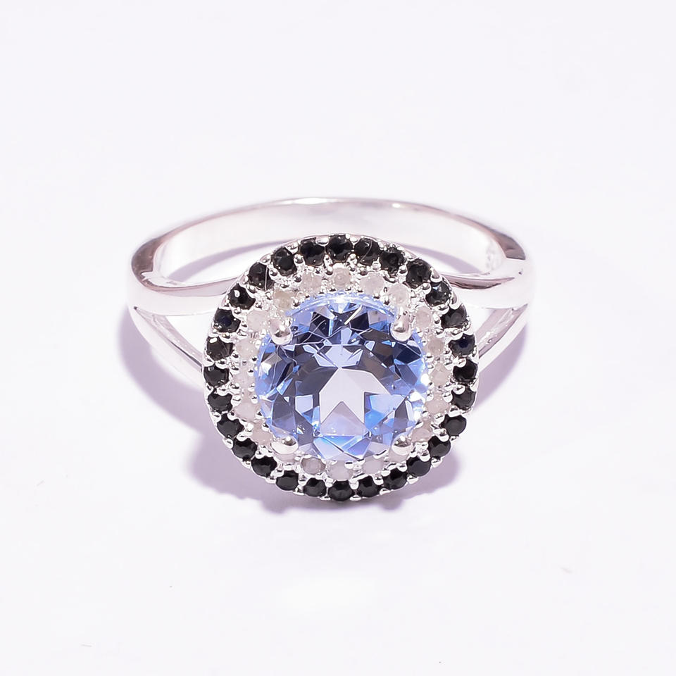 Alluring 925 Sterling Silver Fine Jewelry Blue Topaz/Black Spinal Gemstone Set Pearl Perfect Wedding Engagement/Anniversary Ring