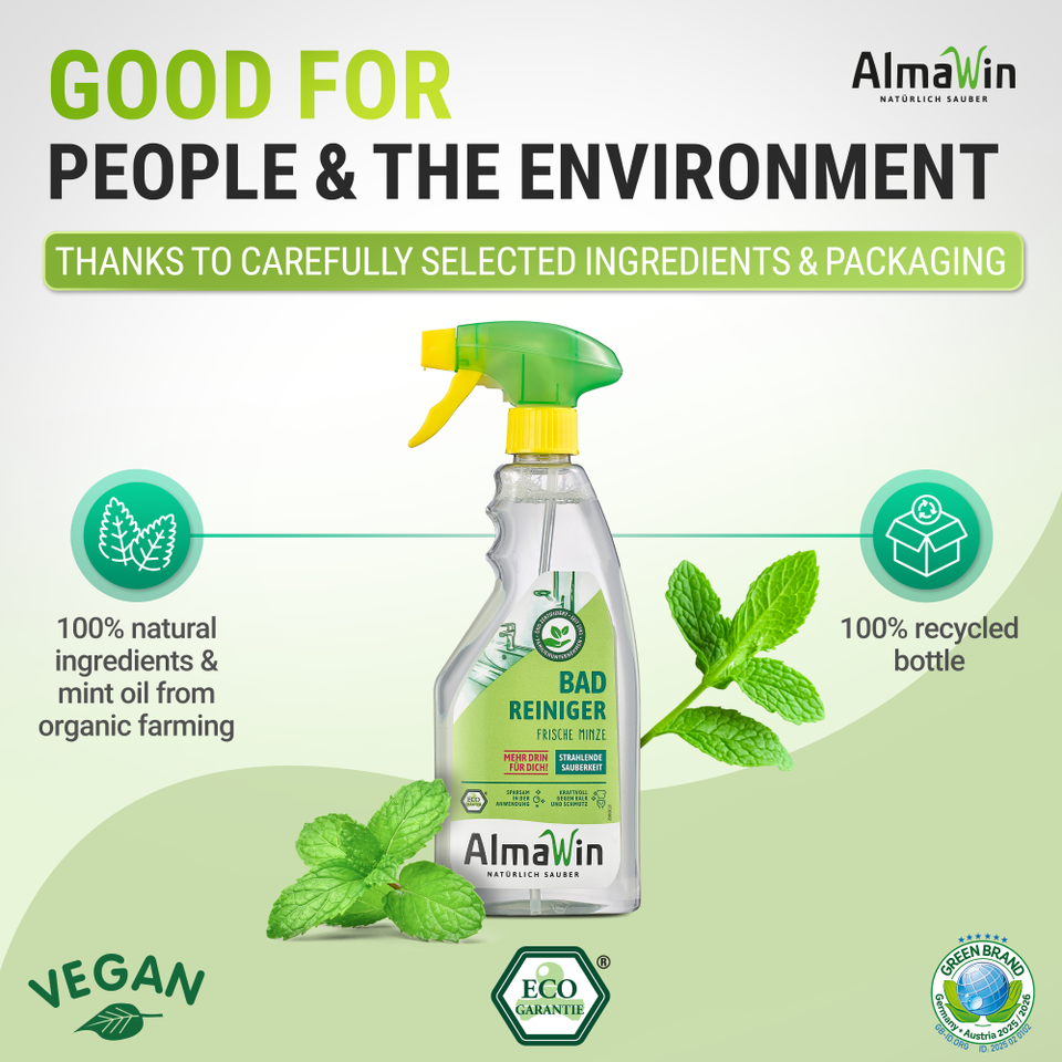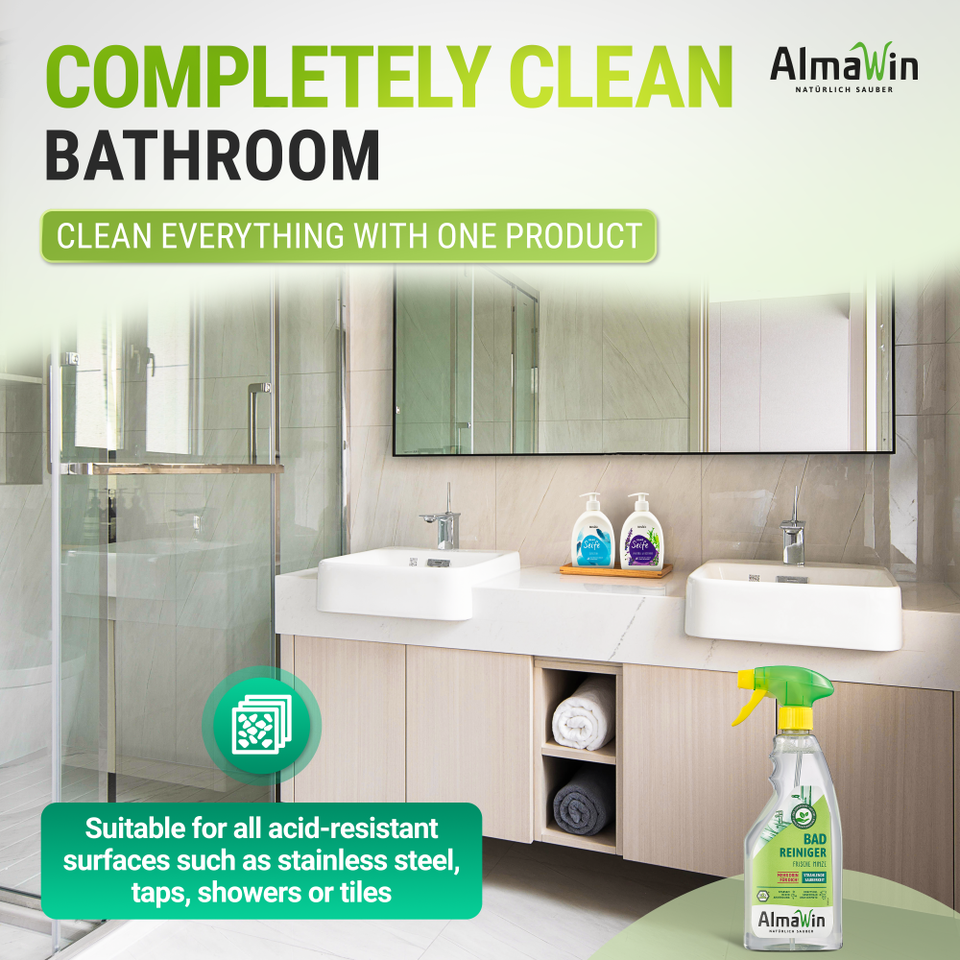 AlmaWin Brand Perfect Bathroom Cleaner 500ml Fresh Mint Against Limescale Soap Residue And Dirt Vegan Organic Detergent