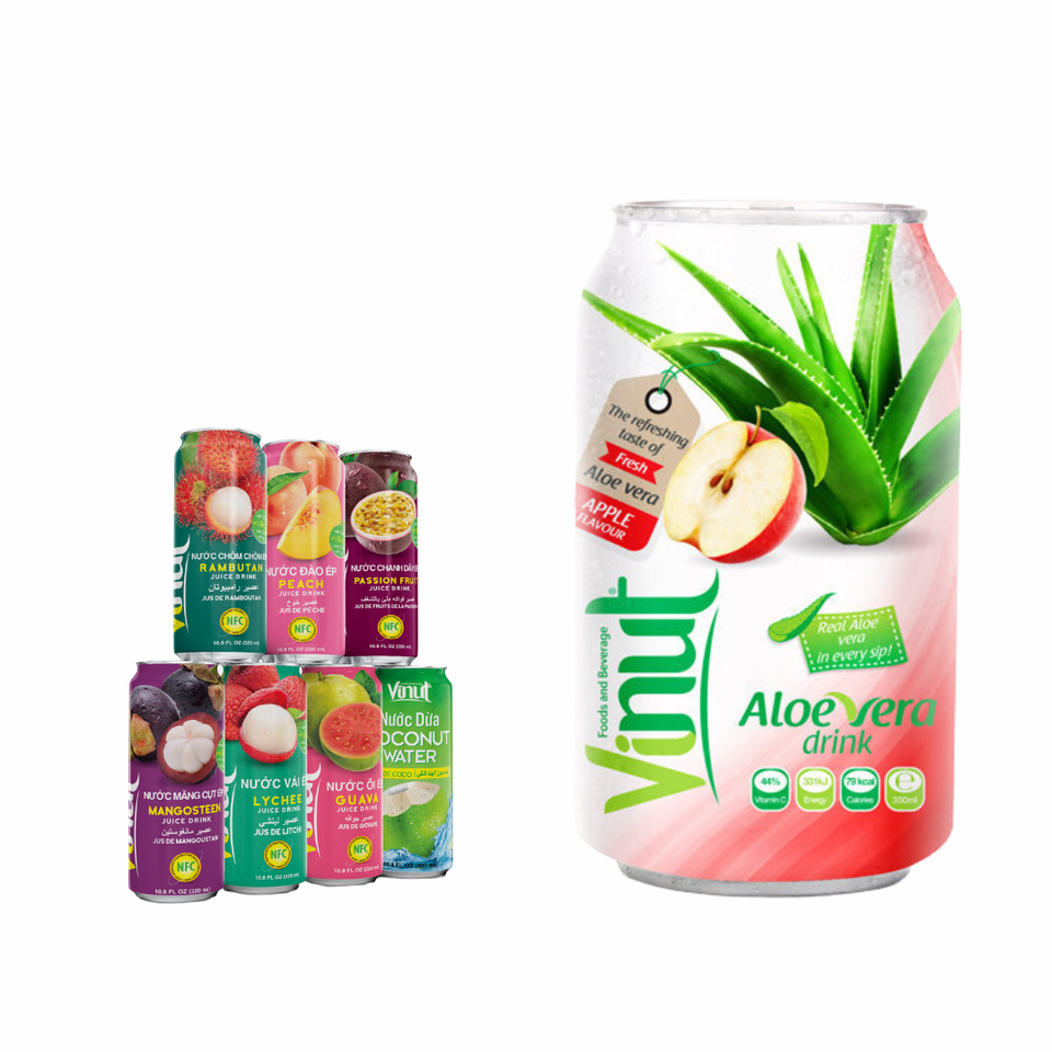 For VINUT Vietnam Manufacturer's 330ml Aloe Vera Sugar-Free Juice Fruit Vegetable OEM/ODM Private Label Beverage Free Sample