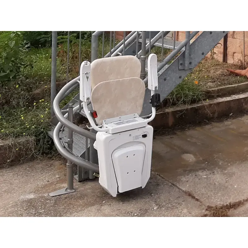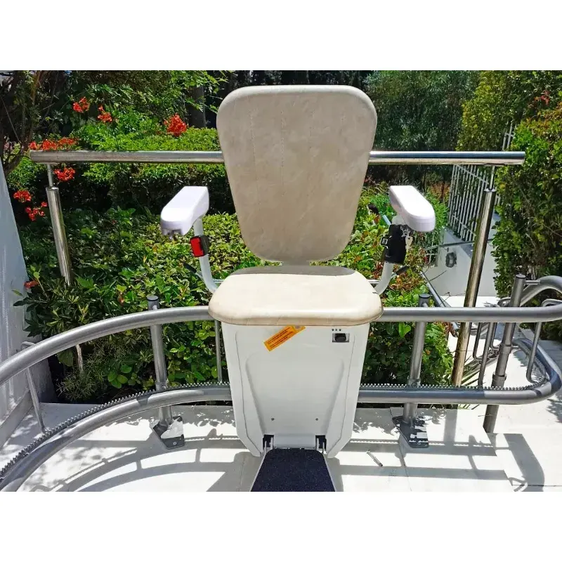Alpha Outdoor Stairlift by Lehner for Curved Spiral Stairs Solid Wood Straight Type for Indoor Use