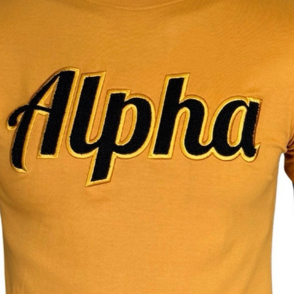 Alpha Year Sleeve Chenille Tee Black Gold Custom Greek Life T Shirt Fraternity Apparel 100 Cotton Premium Streetwear