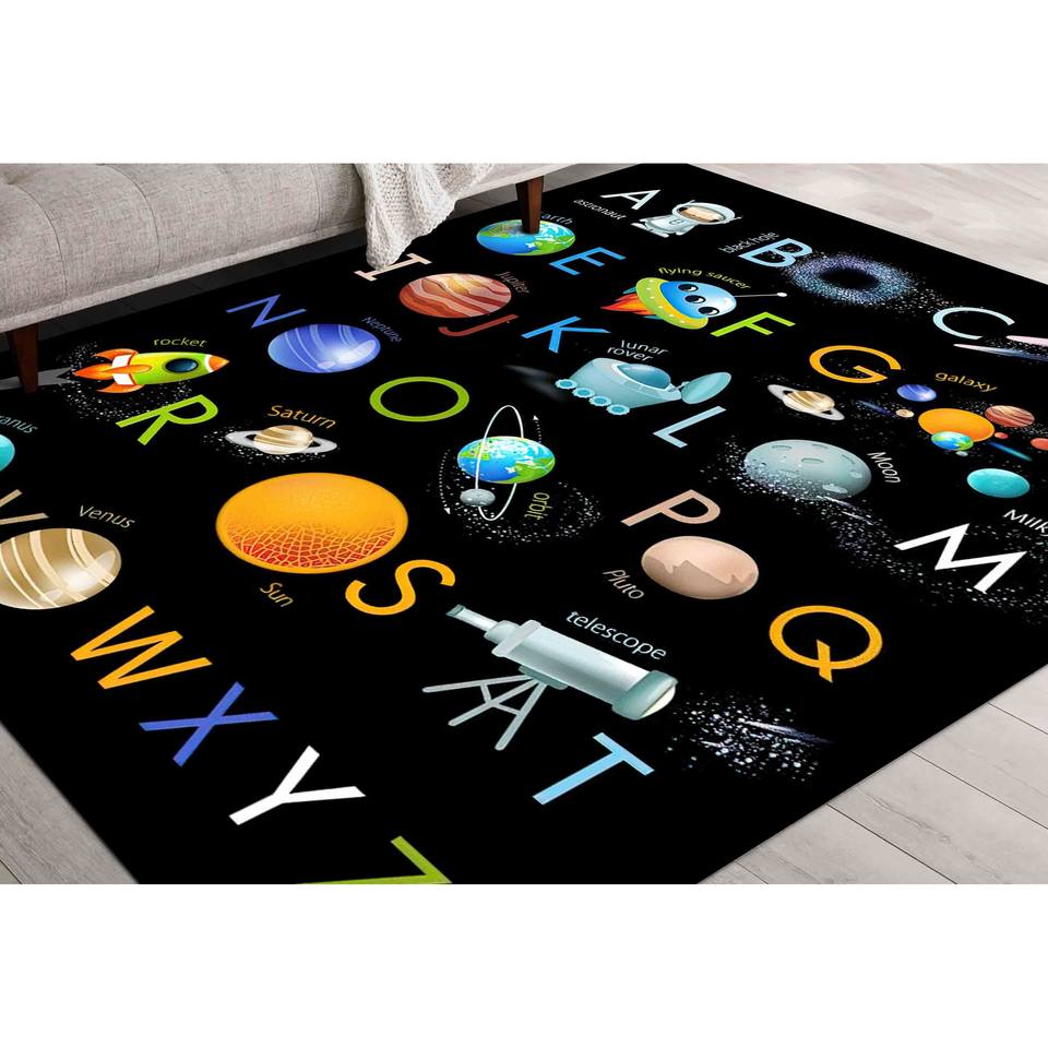 Alphabet Space Rug: Educational Kids Playroom Nursery Decor,With Pile Soft Rug