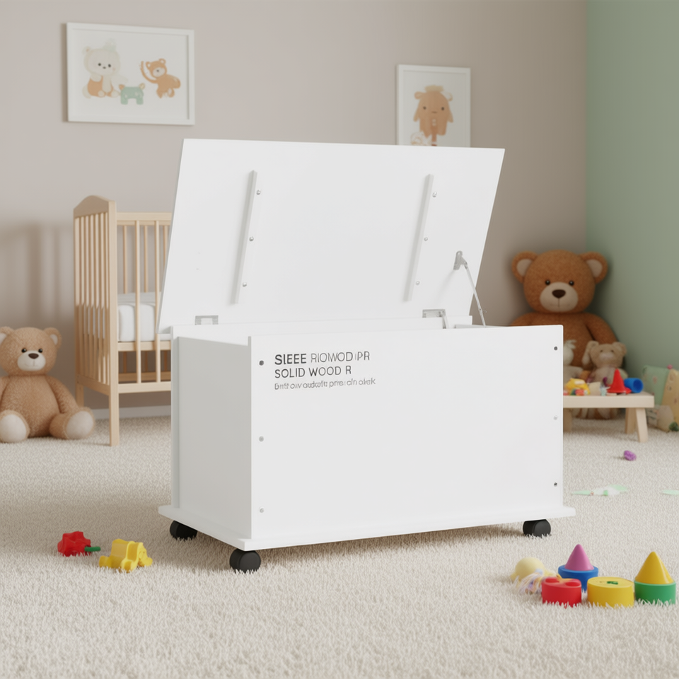 Alta White Solid Wood Storage Chest 28.7x15.6x17.3 Toy Organizer with Wheels