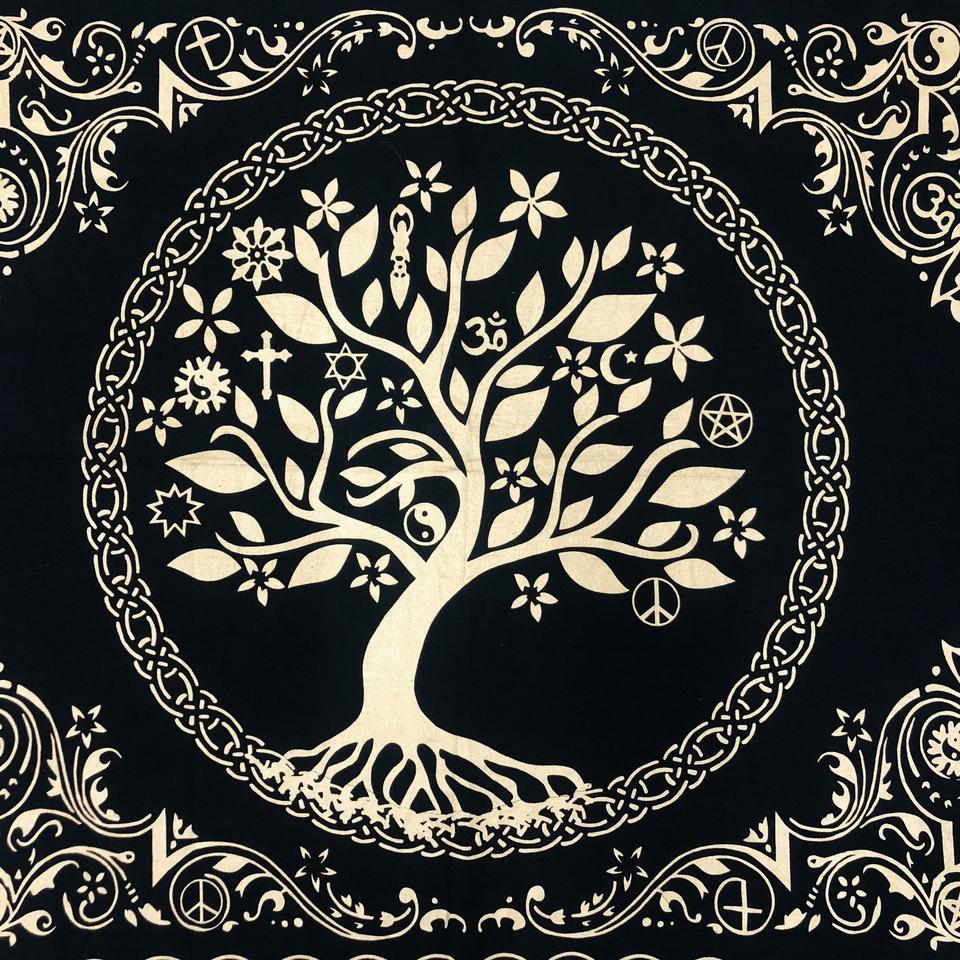 Altar Cloth Celtic Tree of Life Witchcraft Black Gold Table Cloth Square Altar Pagan Spiritual Celestial Deck Cloth