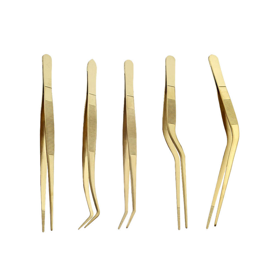 Altomme Instruments Stainless Steel Chef Kitchen Tongs and Tweezers 5 Piece Set Dishwasher and Oven Safe Cooking Tools
