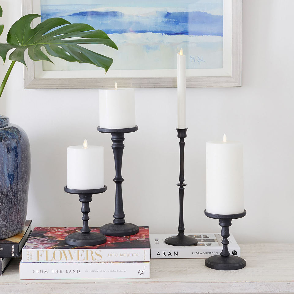 Aluminium Antique Black Candle Pillar Holder for Table Centerpieces Decorations High Quality Metal Aluminium