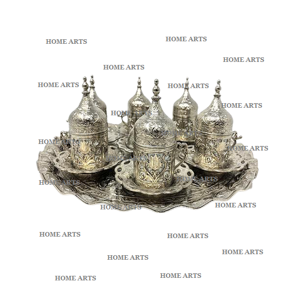 Aluminium Arabic Tea Serving Cup Saucer Set Etching Work Customized Size Aluminium Cups & Saucers