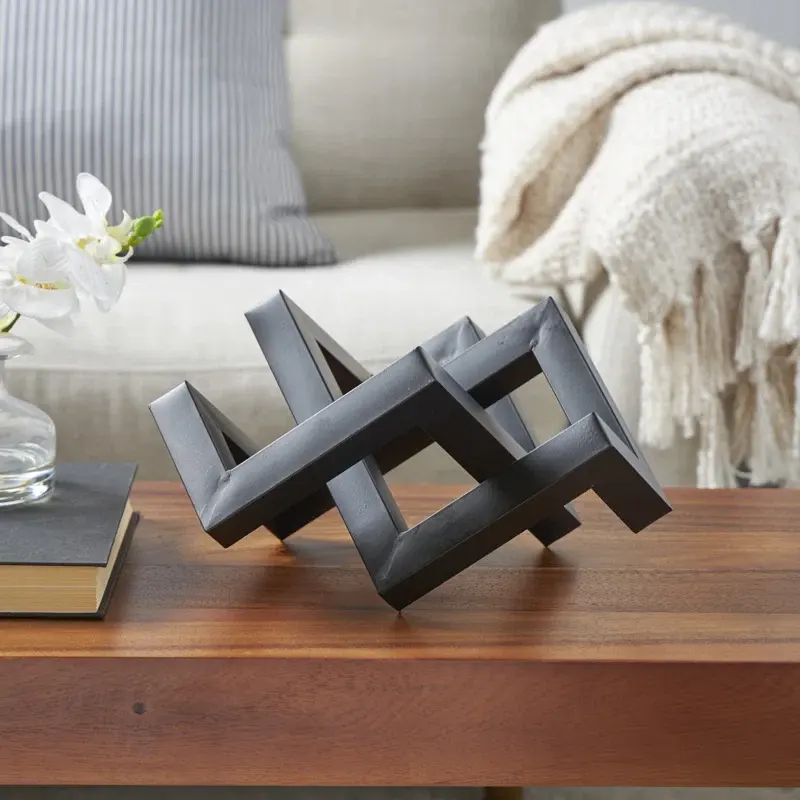 Aluminium Black Metal Abstract Shaped Geometric Sculpture is an abstract geometric made of black metal modern polished sculpture