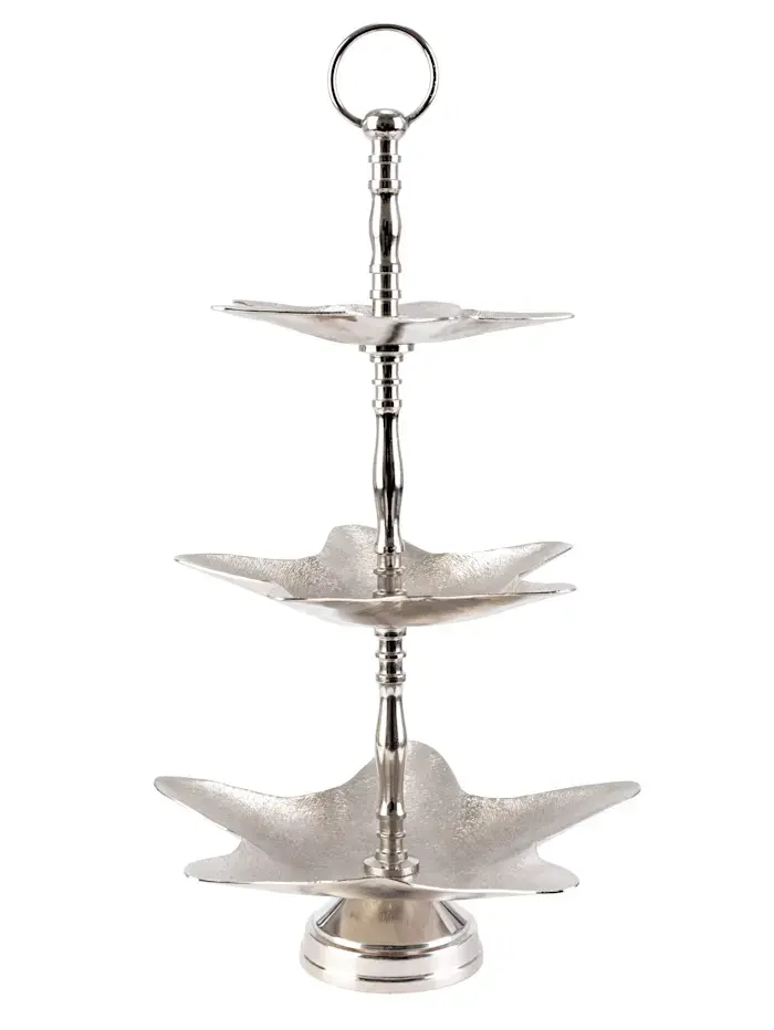 Aluminium Cake and Dessert Stand 3 Tier Marvelous Design Silverware Handmade Top Selling Flower Shape Pastry Stand