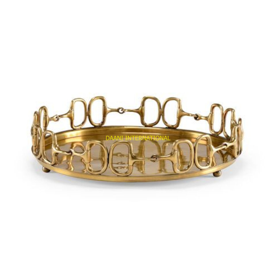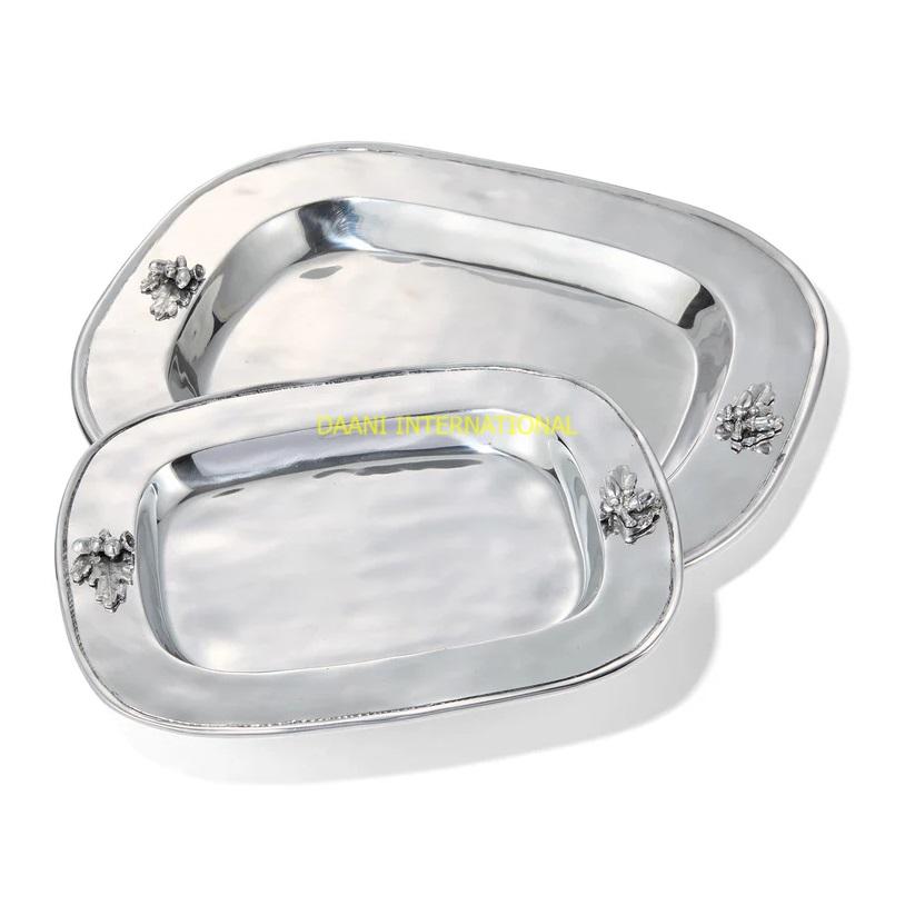 Aluminium Coffee Serving Tray Set With Bow Handles Table Decorative Food Platters For Snacks and Cakes Home Kitchen Decor Plates