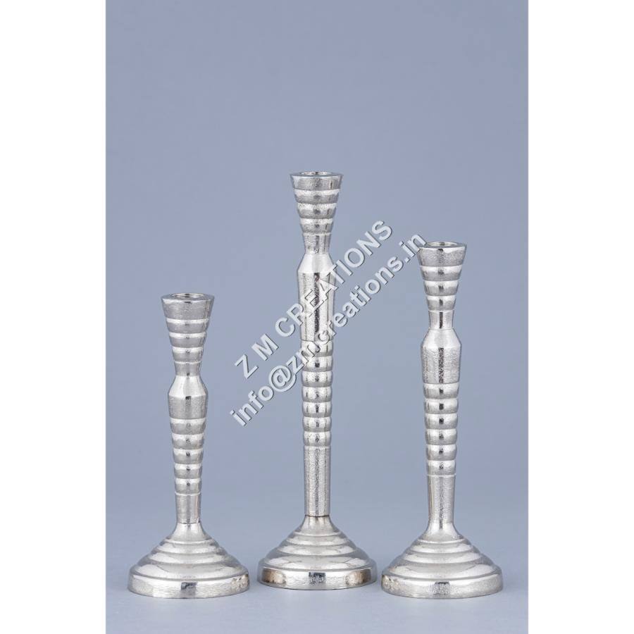 Aluminium Decorative Pillar Holder Handmade Nickel Finish Wedding Elegant Tabletop Display Candle Stand Set