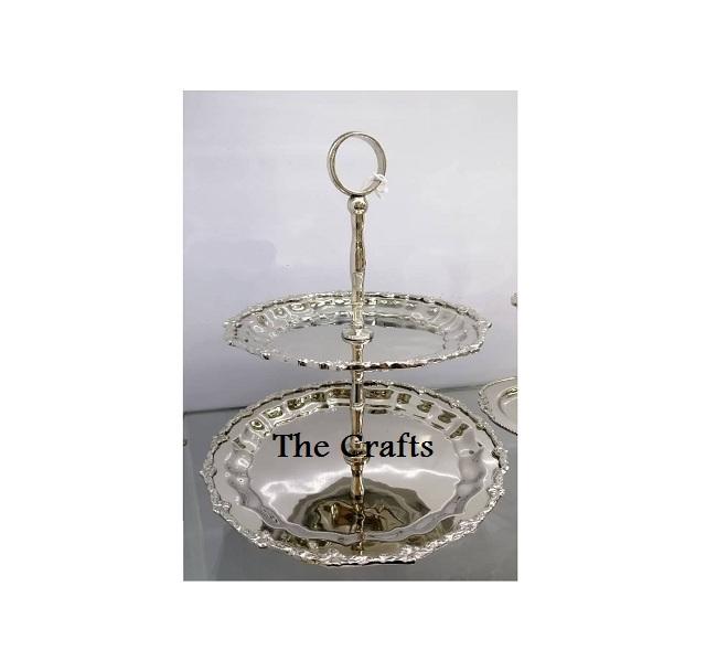 Stainless Steel Cake Stand Different Size Set Of 2 Cake Serving Stand Silver Color Round Shape Cake Stand