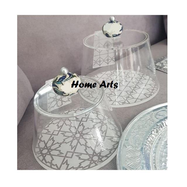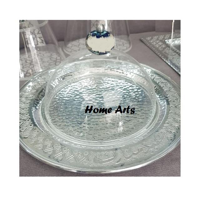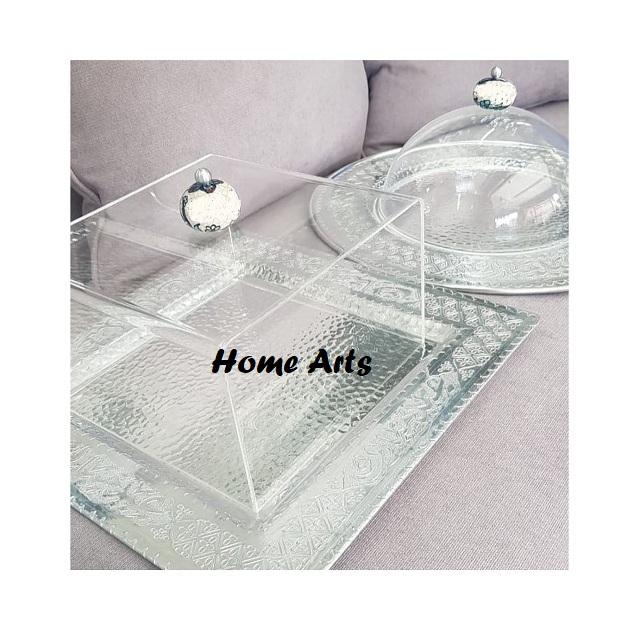 Aluminium Hammered Food Serving Tray With Glass Dome Bestest Quality Dates Serving Tray With Dome In Bulk