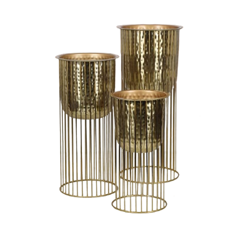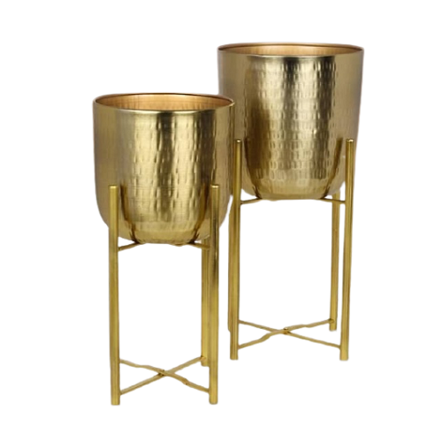 Aluminium Hammered Planters With Iron Stand Different Size Set Of Two Planter For Hotel And Restaurant Decor