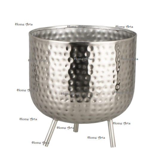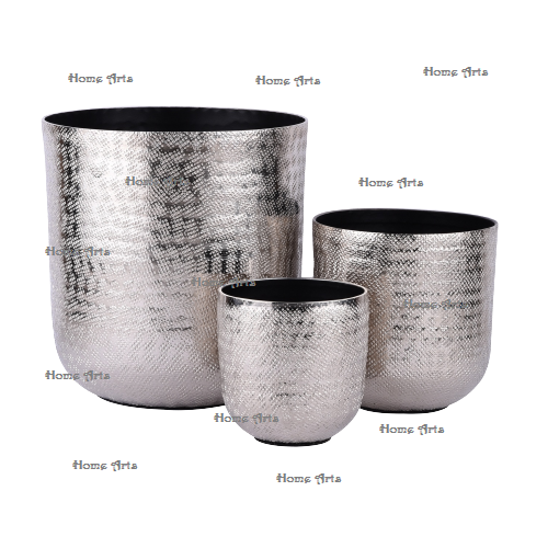 Aluminium Hammered Silver Color Planter With Good Quality Customized Size Flowers Pot For Garden Decor Accessories