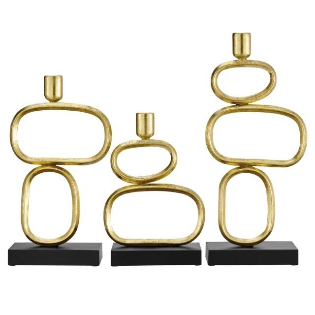 Aluminium Midcentury Modern Geometric Sculpted Gold and Black Candlestick Candle Holders Metal Decor