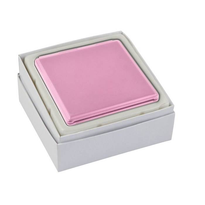 Aluminium Pink Shiny Pocket Makeup Mirror Single-Sided Mini Cosmetic Mirror with Foldable Frame Leather Case Custom Print Logo