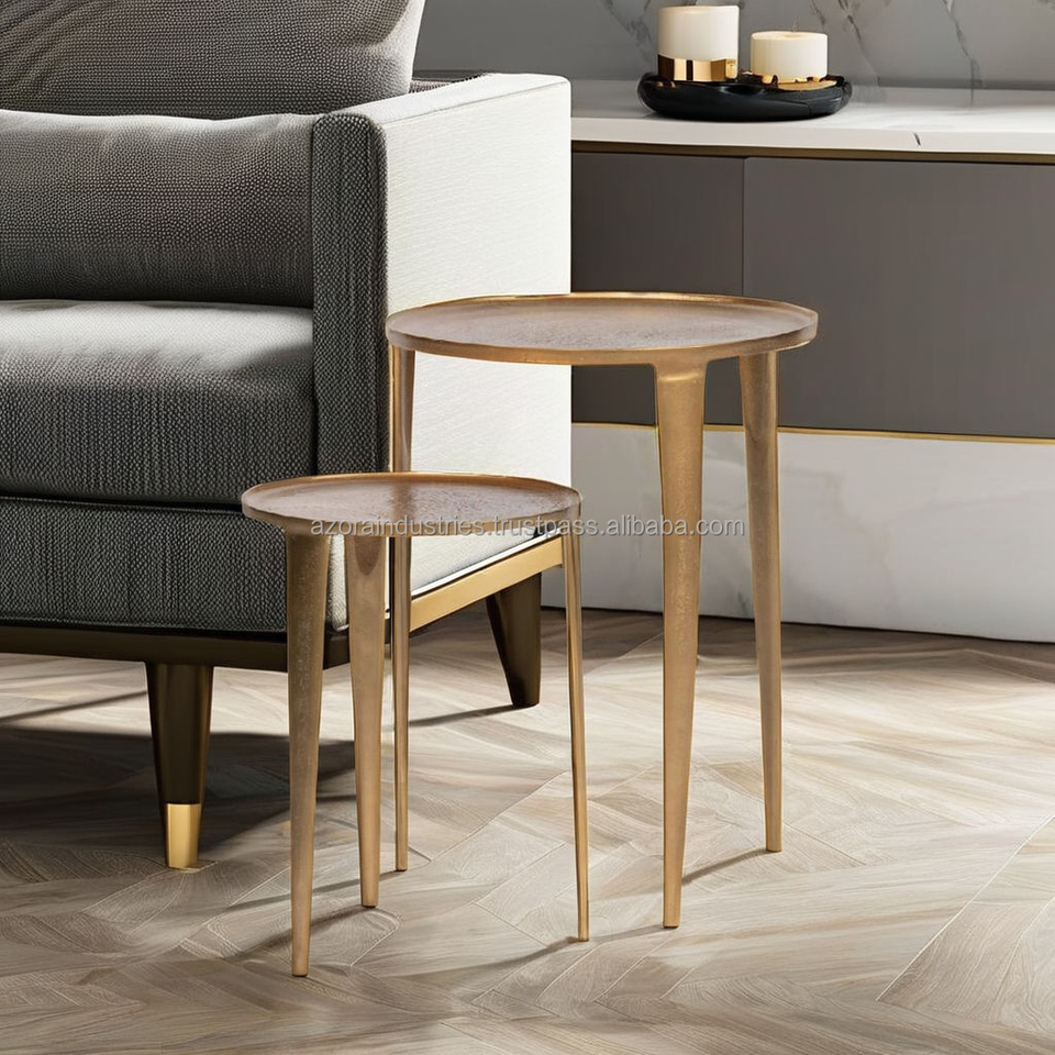 Aluminium Side Table With Antique Finishing Handmade Accent Sofa End Table for Indoor by Azora Industries