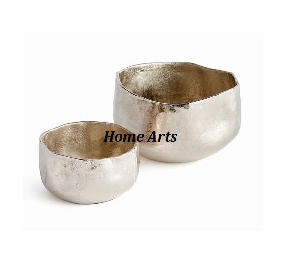 Aluminium Silver Color Dessert Dates Bowl Set Of 2 Round Shape Chocolate Bowl For Restaurant Dinnerware Use
