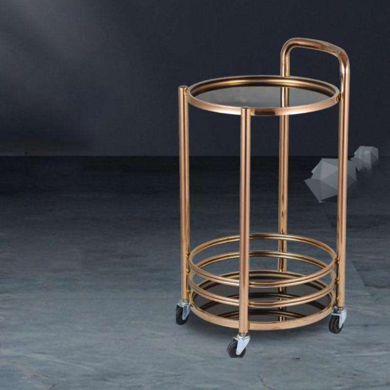 Aluminium and Glass Side Table With Trolley With Raw Gold Finishing for Living Room and Bedroom for Sale